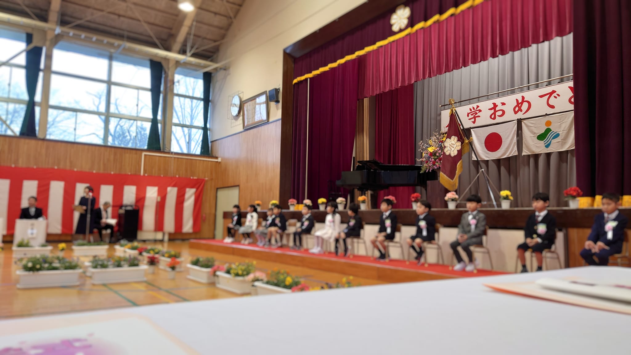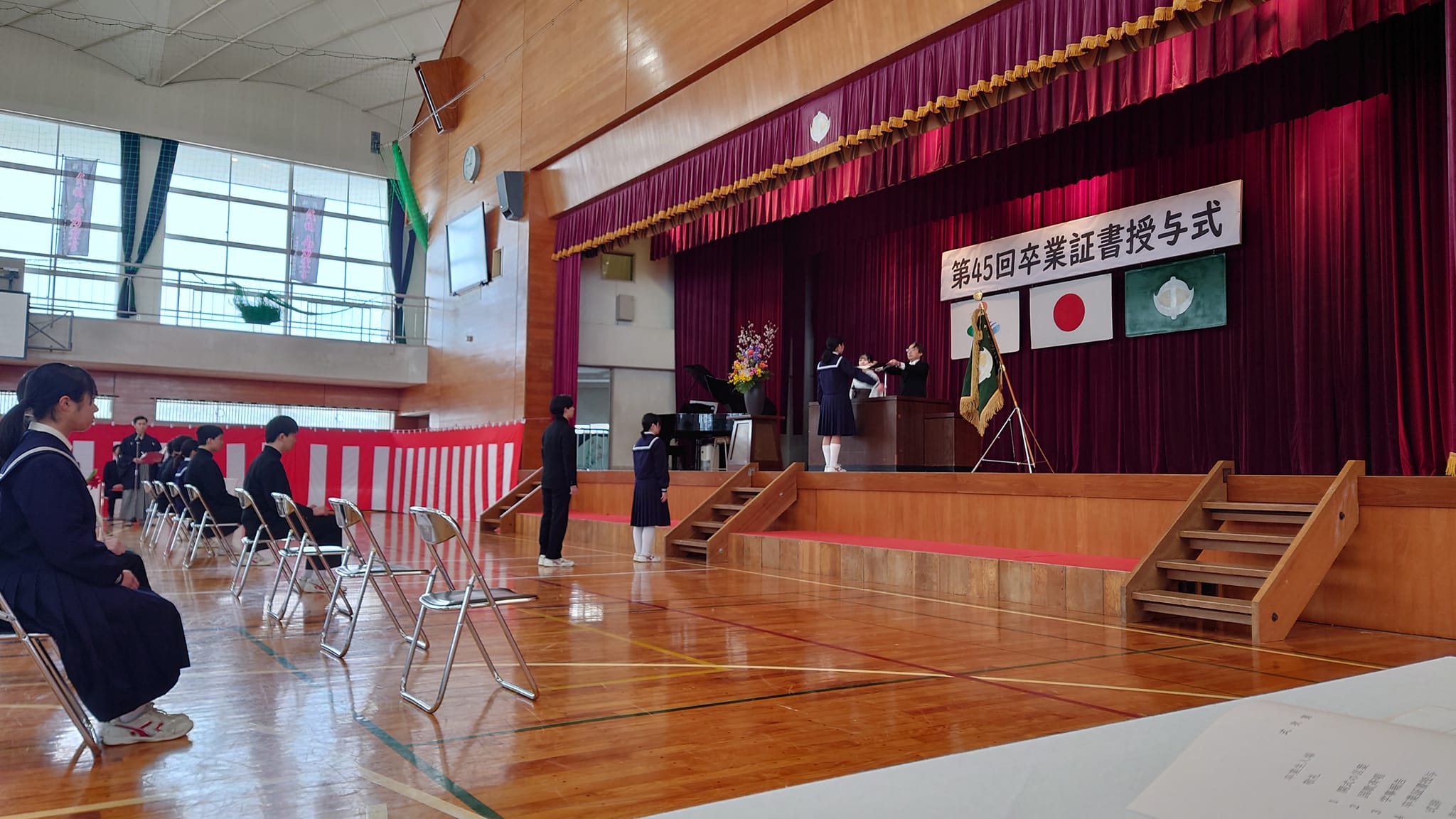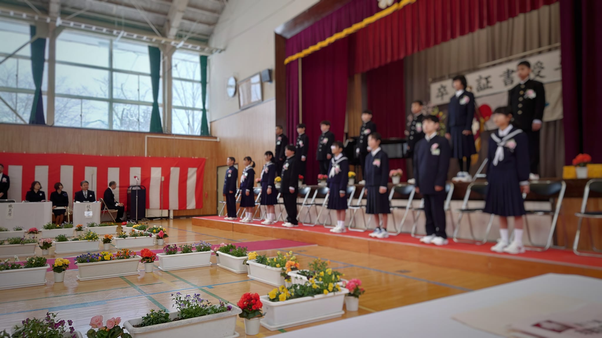 歌声で吐く息が白くなるほどの気温でしたが、心温まる送辞&答辞でほっこり。とても良い式でした。