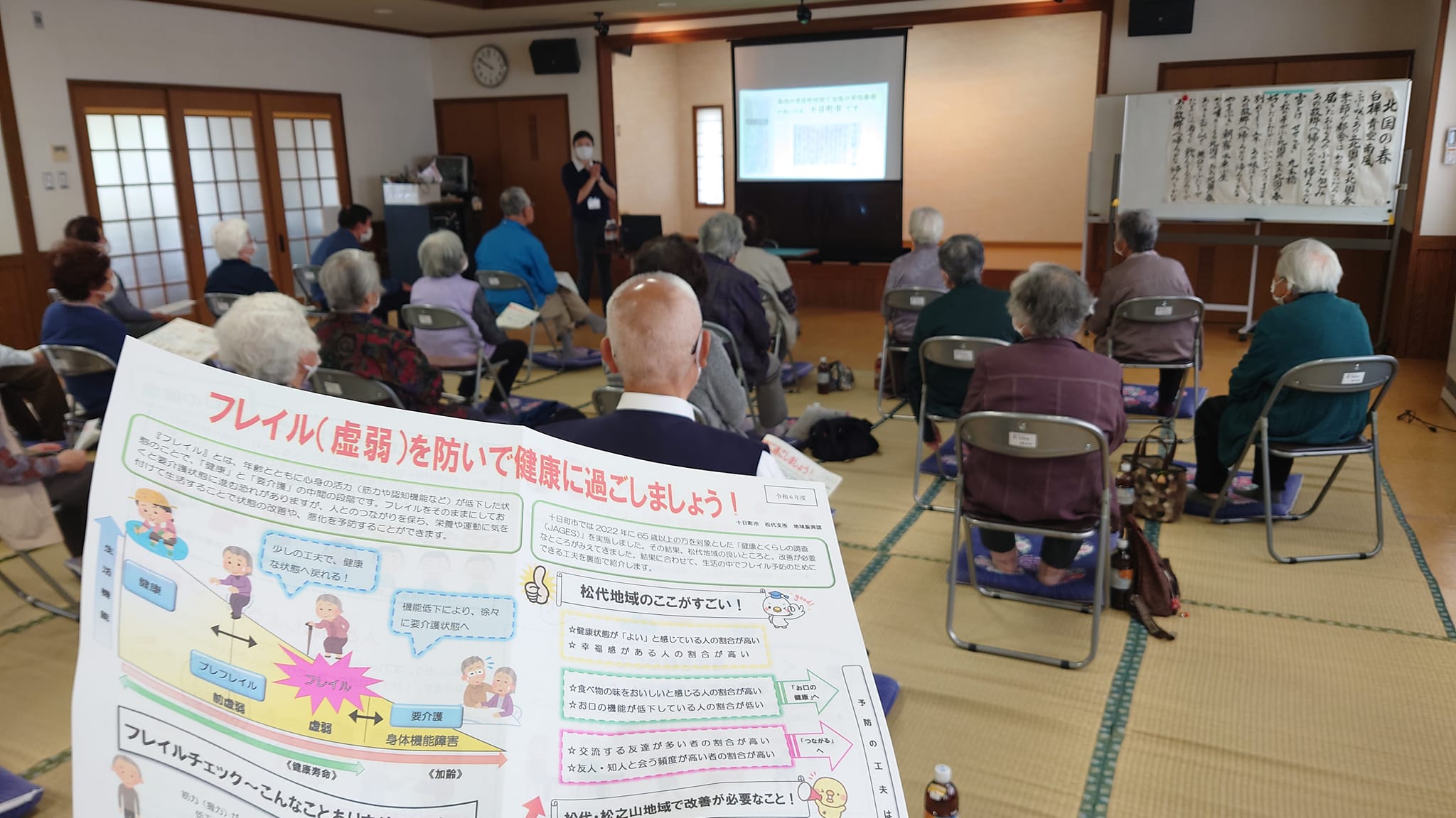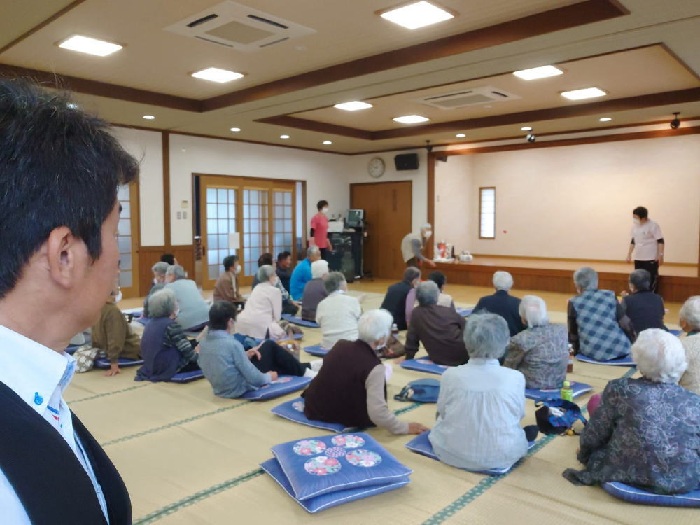 - 高齢者の皆さんが集まって軽い運動やゲーム、講話を聞いたりしながらお友達とも交流ができる会にお邪魔。