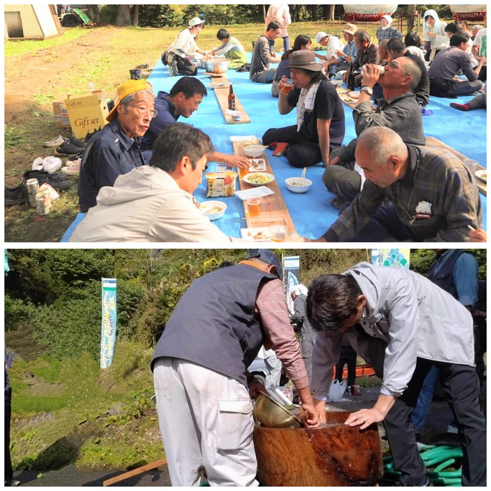 - 莇平集落の収穫祭にお招きいただきました。今年採れた餅米で餅つきをし、地元産の野菜たちで作られた御雑煮。づいきや菜っ葉の漬物、ジビエ焼肉などを美味しくいただきました。天候にも恵まれて最高に気持ち良く楽しい収穫祭を過ごさせていただきました。