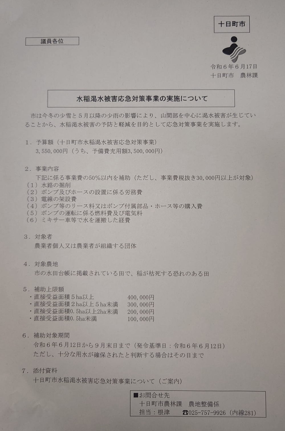 - 十日町市が田んぼの水不足対策を応急実施したので周知がてら状況を聞いて回る日々。