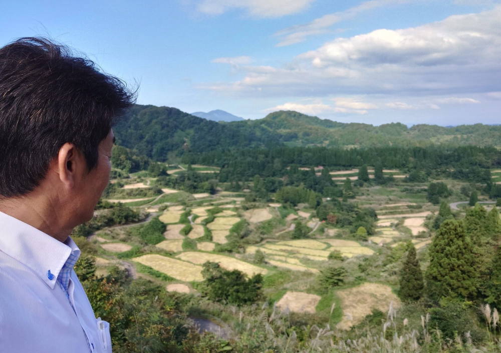 東京から十日町市松之山へ直行し五十子平、留守原の棚田で現場を視察し生産者の声を聞きました(尾身県議、小山県議、村山市議同行)。
