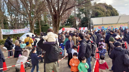 行列の先、写真左の奥に特製かまくら。