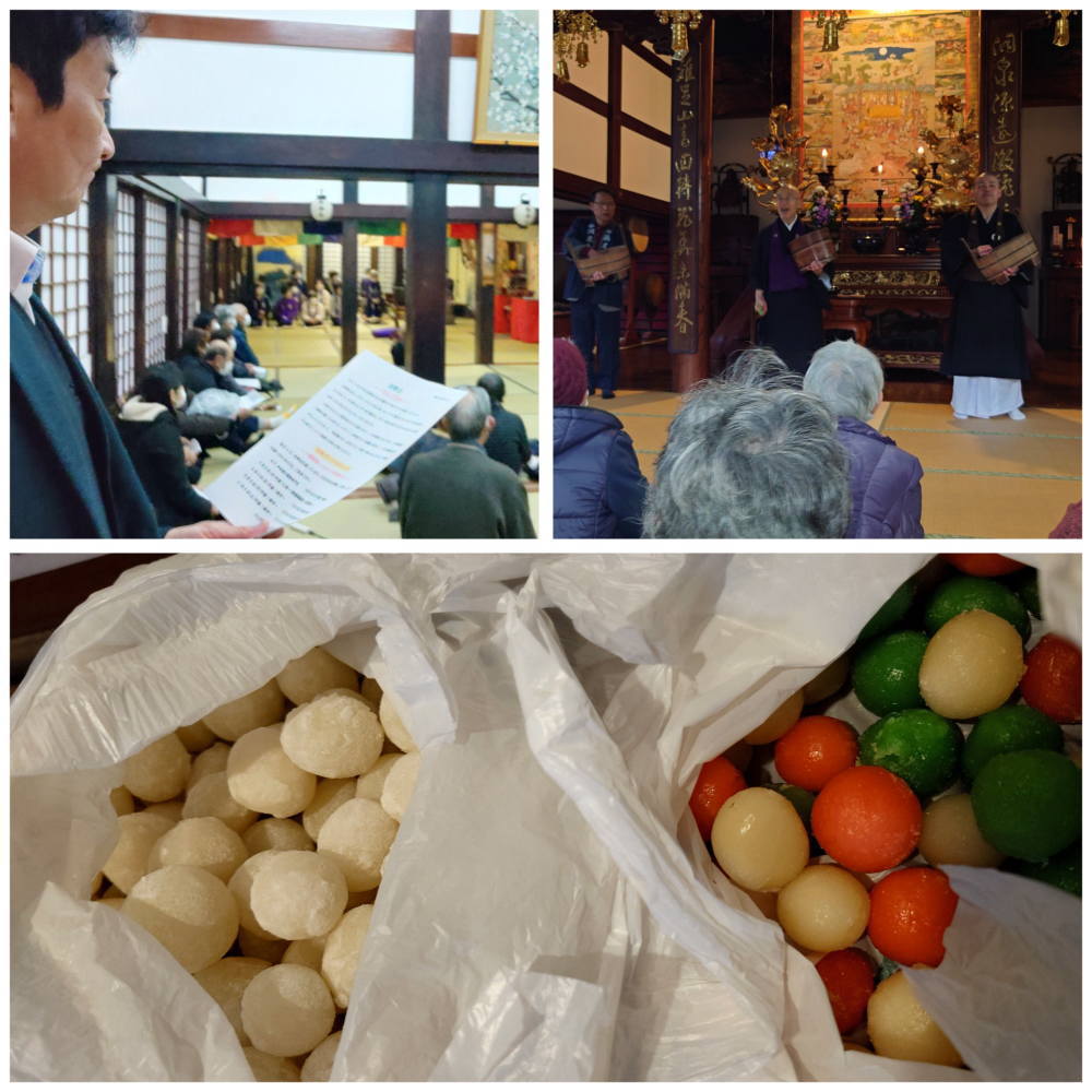 午後は洞泉寺さんのだんごまきにお邪魔。お爺ちゃんお婆ちゃんとの会話も楽しめ、先輩後輩やお世話になっている方々にもお会いできて、楽しいひとときとなりました。長命寺さんは白の1色。洞泉寺さんは赤・緑 白の3色。違うもんですね〜