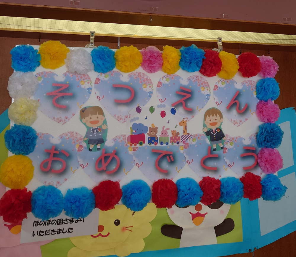 - 我が子らもお世話になった保育園の卒園式にお招きいただきました♪ またウルッです^^; 写真の卒園お祝い飾り(約畳半畳くらい)はお向かいのデイサービスの皆様からいただいたプレゼントとの事です。嬉しいですね