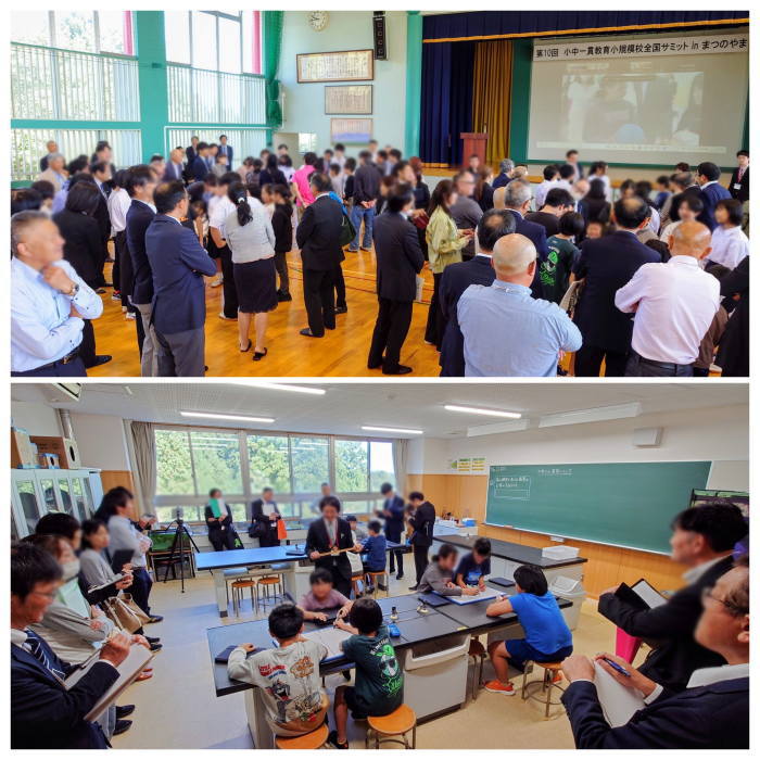 - 全国小規模校のサミットがまつのやま学園で開催され、お招きいただきましたので参加。高学年の生徒が下の学年の生徒・児童をお世話して導いている姿を拝見し感動いたしました。素晴らしい取組みと思います。これからも応援してまいります。