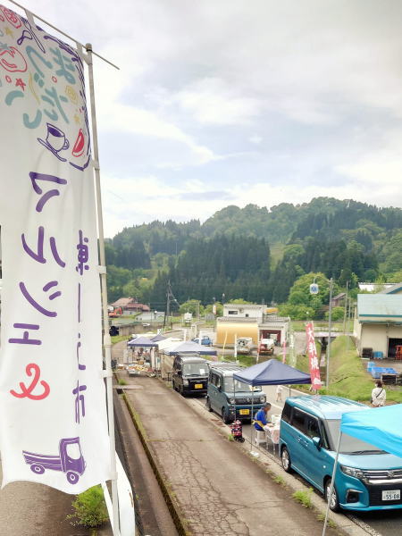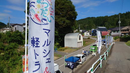 - まつだいマルシェ軽トラ市で地元食などを堪能。