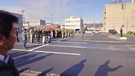 - 陸上自衛隊による「隊区内行進訓練」の激励式を見学。隊友会の方から聞いた話によると災害などが発生した場合に一番早く到着し、活動をする部隊なので地理等を把握する目的もある訓練との事でした。