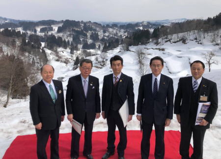 当時は政調会長でいらして、日本各地での調査活動の一環で我が十日町市蒲生の棚田で「中山間地での水稲耕作の課題(水確保の難しさ、大型機械の難しさ等)」を説明させていただいたのでした。