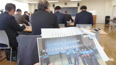 本会議の議題は①休日の中学校部活動地域移行について ②居心地の良い学級づくりについて